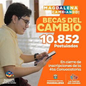 Para el 2023 se espera activar la quinta convocatoria para las inscripciones de las Becas del Cambio auspiciadas por la Gobernación del Magdalena. Aún no hay un pronunciamiento oficial, pero es bien conocido el éxito obtenido en la cuarta convocatoria.